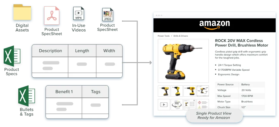 Export products for Amazon Seller Central in the exact required format, ensuring smooth and accurate publishing with faster time to market and data syndication that's error-free.