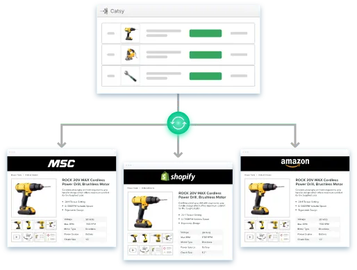 Publish products to all mediums at once from Catsy's single source of truth ecosystem.