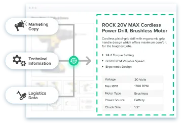 Combine product data, catalogs, and digital assets from multiple suppliers into one centralized, structured format for easy syndication and product content accuracy.